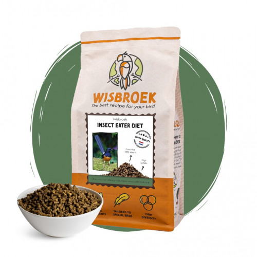 Wisbroek Insect Eater Diet is a pellet for insect-eating birds and contains over 30% insects. This pellet is suitable for insect-eating birds such as bee-eaters, bulbuls, trushes, nightingals and starlings.